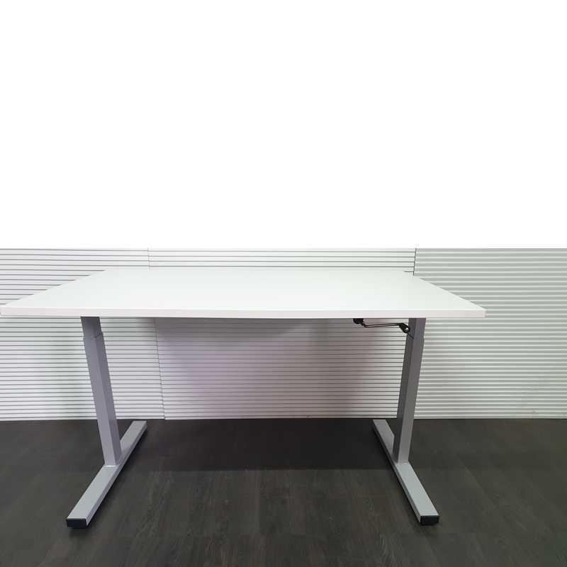 Twinform bureau, 120x80cm, wit blad, lichtgrijs Tpoot, hoogte verstelbaar met slinger