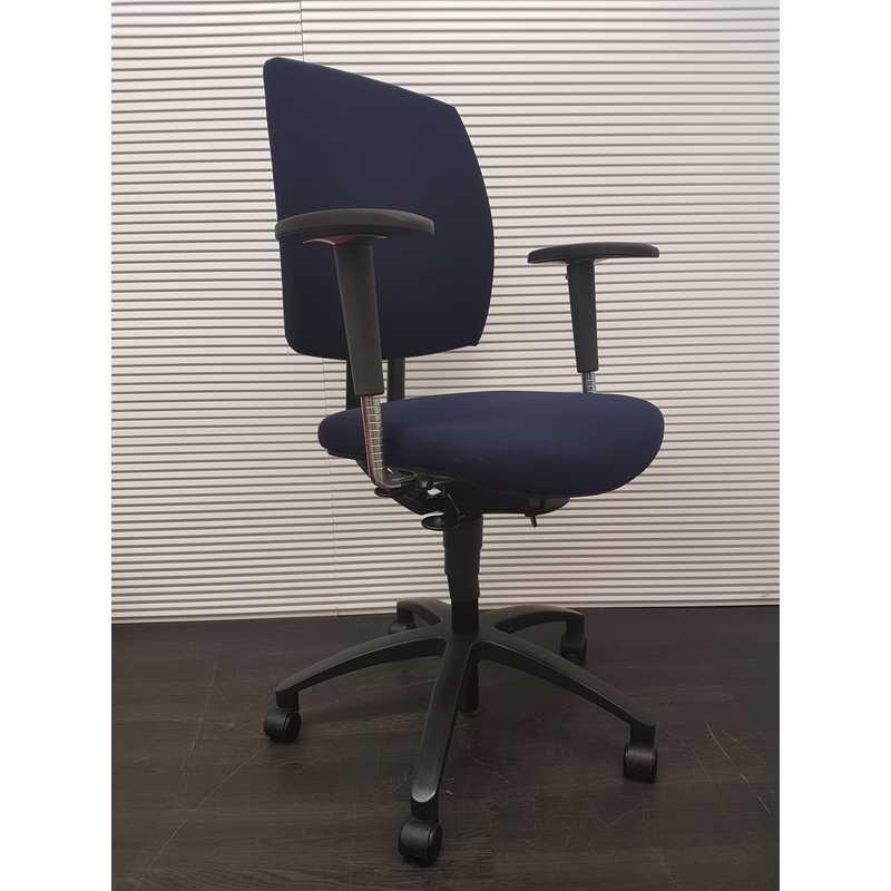 Drabert entrada bureaustoel, donkerblauwe stof, aluminium zwart voetenkruis, 4D soft pad armleggers