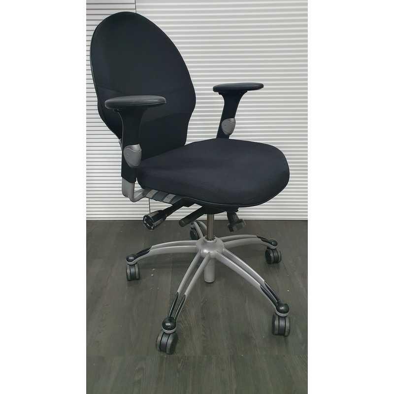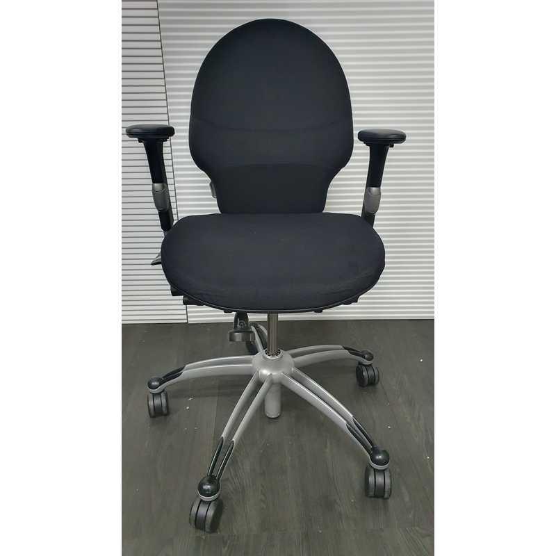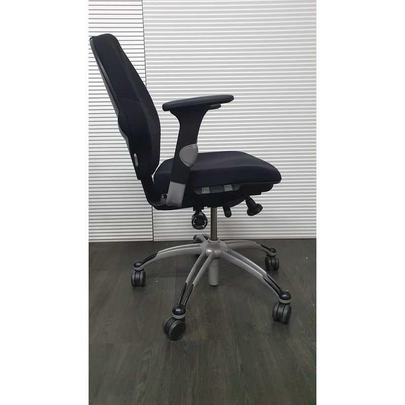 RH Logic Extend 120 bureaustoel, zwarte stof met soft pad armleggers en zilvergrijs split aluminium voetenkruis.