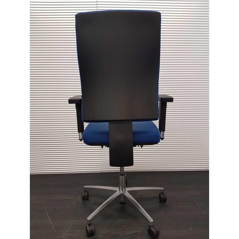 Topstar Dua bureaustoel, blauwe stof, extra lange rug, chroom voetenkruis 3D softpad armleggers
