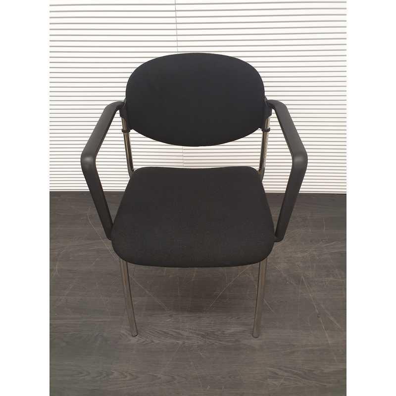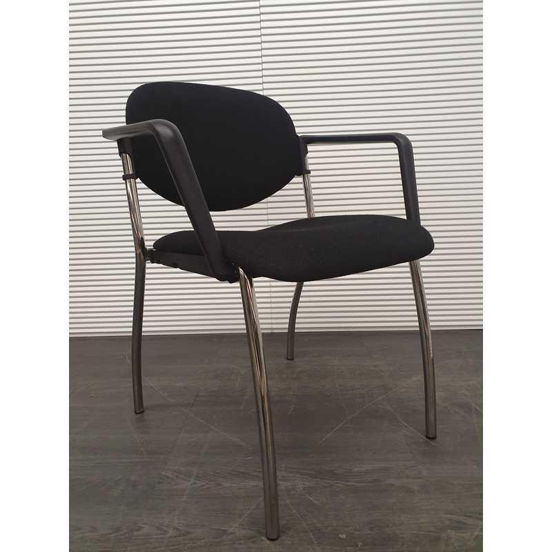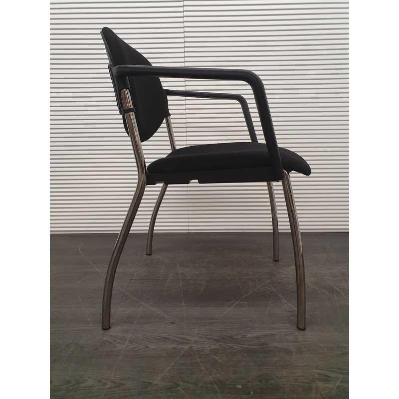 Vergaderstoel, zwarte stof, kunststof afwerking armleuning, chroom 4 poot