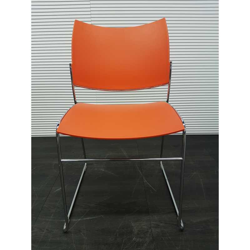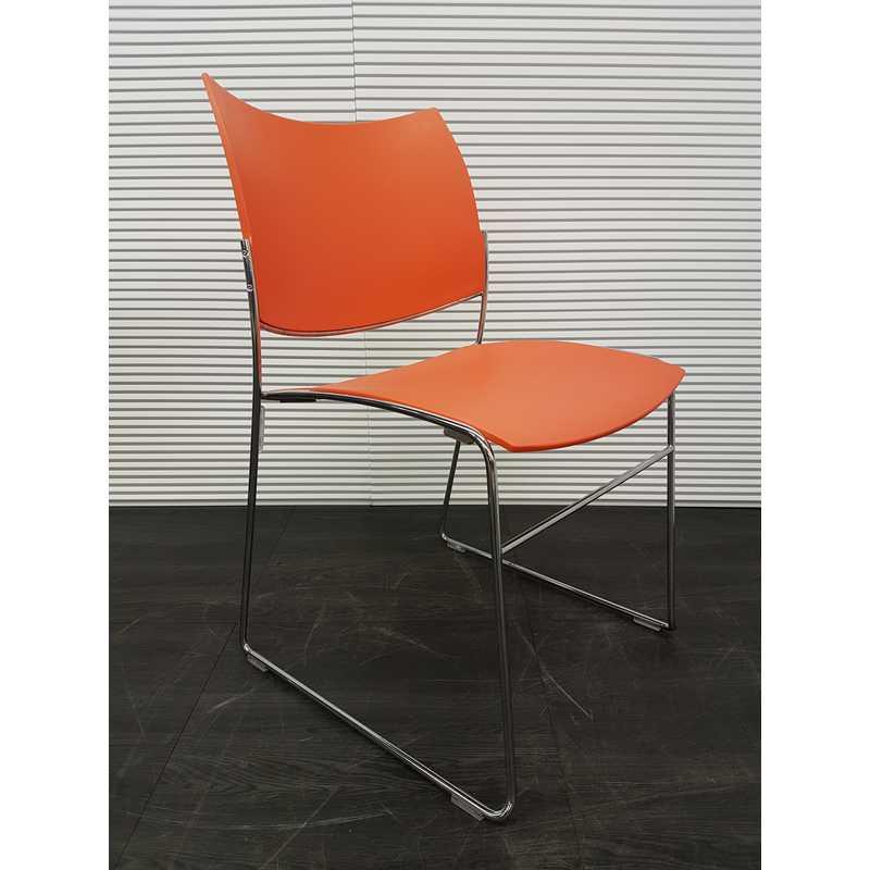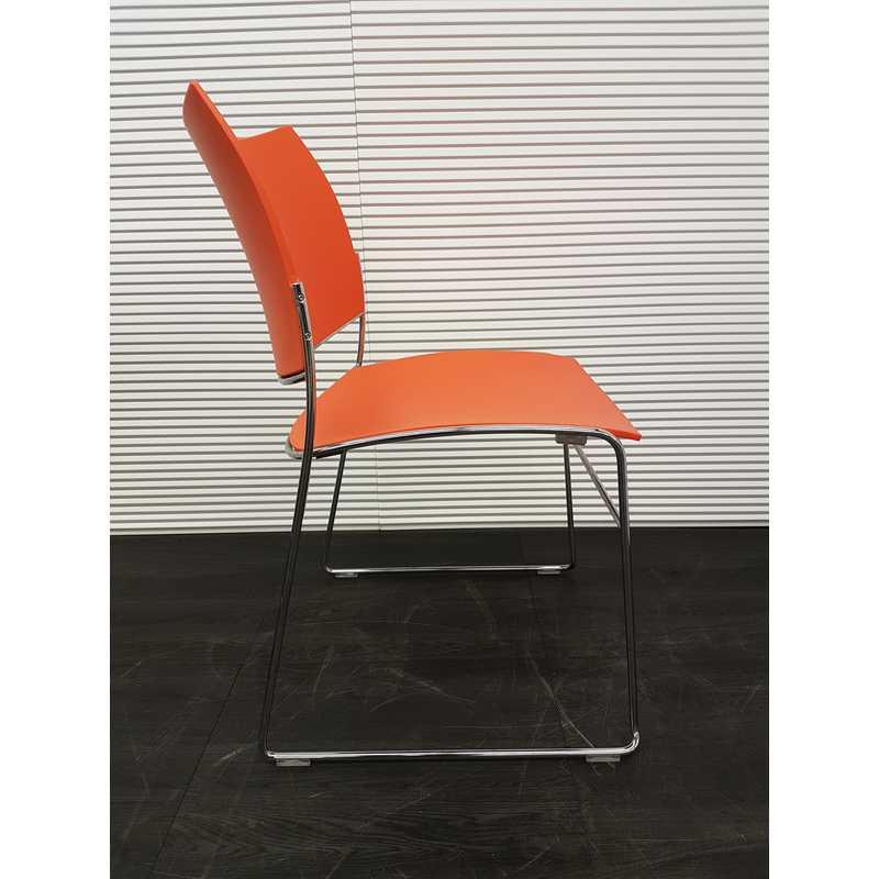 Casala Curvy kantinestoel, draadframe chroom met oranje kunststof zitting en rug en stapelbaar