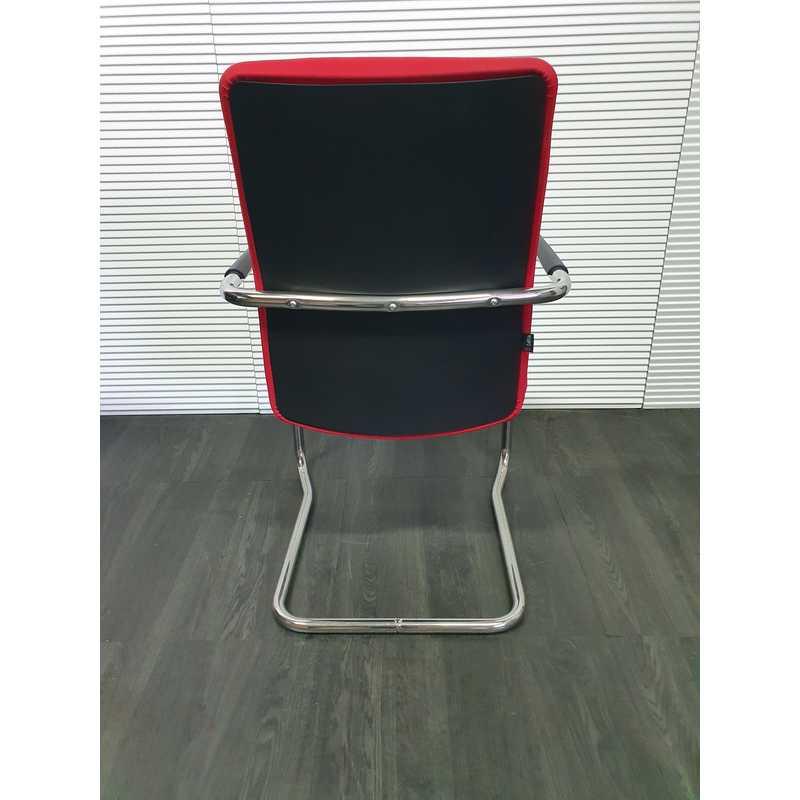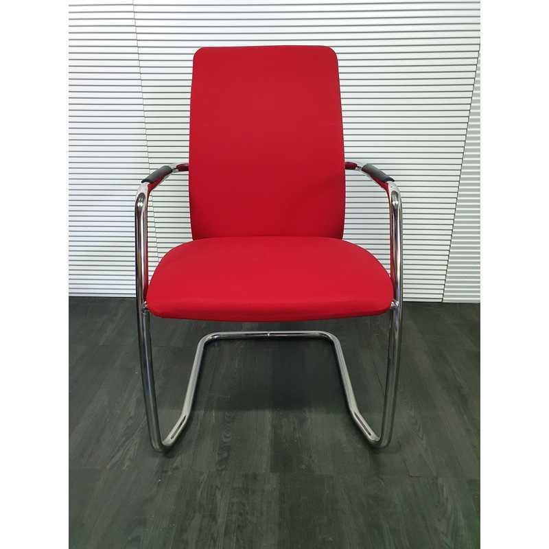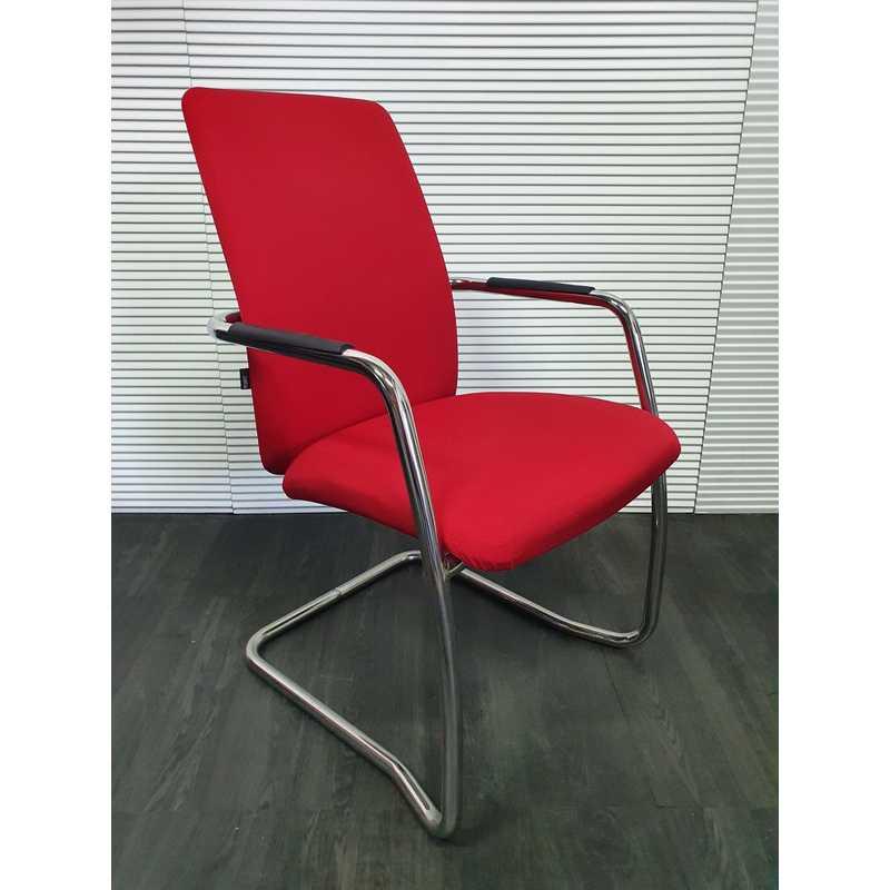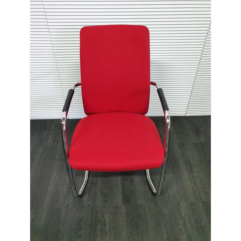 Beta vergaderstoel donkerrood gestoffeerd met hoge rug, chroom slede