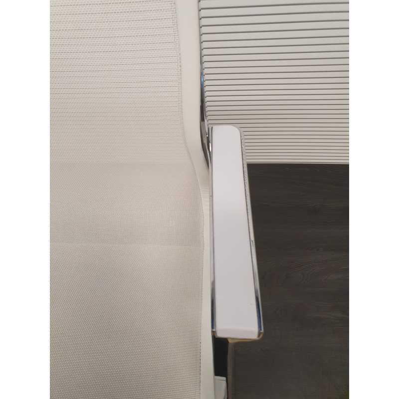 Luxy Nulite vergaderstoel,wit netwave zitting en rug met lederen afwerking, gepolijst aluminium voetenkruis met wielen