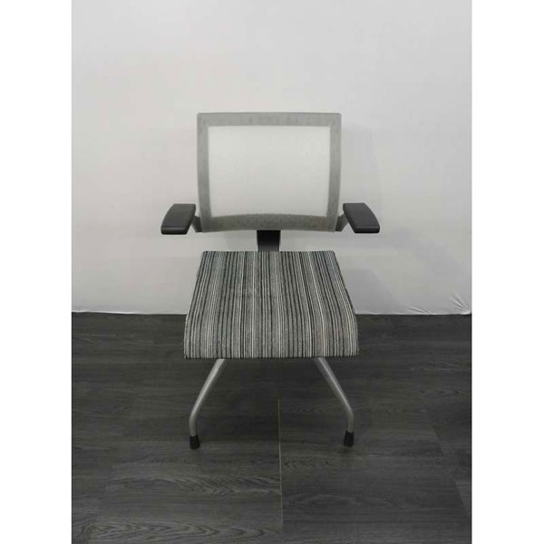 Ahrend Centennial vergaderstoel, zwart/wit stof, kunststof rug,softpad armlegger, zilvergrijs gelakt 4poot
