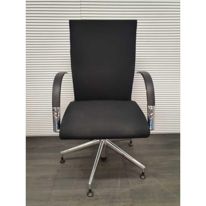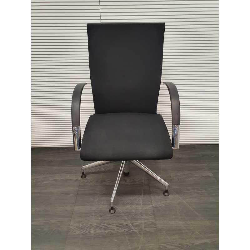 Ahrend 250 vergaderstoel, zwart stof, kunststof afwerking armleuning, chroom frame, voetenkruis met stelvoetjes
