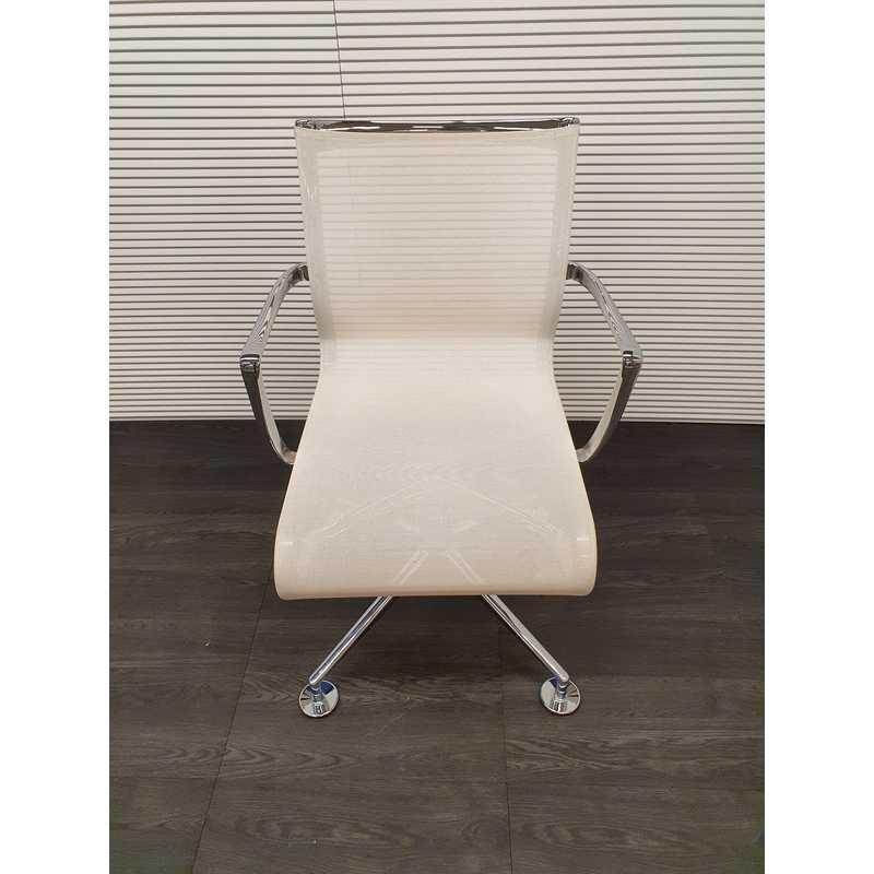 Alias 437 Meetingframe swivel chair ,wit netwave zitting en rug, chroom 4poot met stelvoetjes