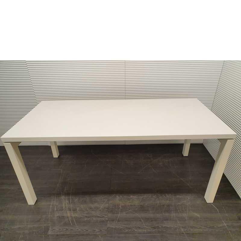 Voortman Hi Tee vergadertafel recht B180xD90cm, zwevend 39mm duropal wit blad, mat wit onderstel, met stelvoetjes